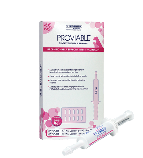 Capsules contain 5 Billion bacterial colony forming units plus 2 prebiotics per capsule. Paste contains probiotics plus 2 prebiotics and Kaolin/Pectin to help firm stools. Proviable contains 7 strains of microorganisms, and research suggests a multi-strain product has a higher chance of colonization versus a single strain product.